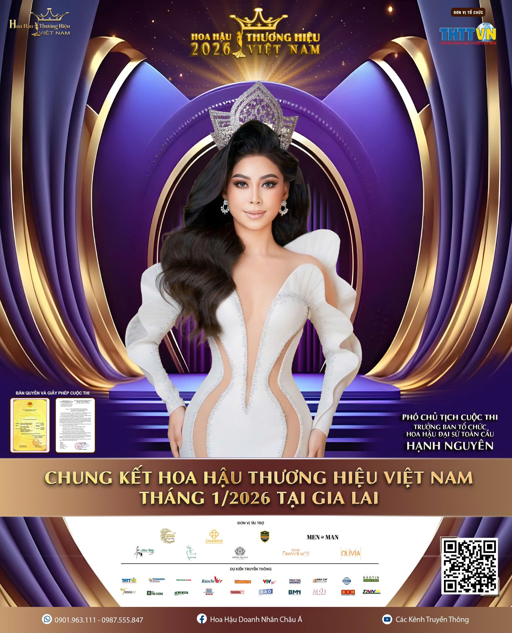 Theo kế hoạch, đêm chung kết Hoa hậu Thương hiệu Việt Nam 2026 dự kiến diễn ra vào đầu tháng 01/2026 tại tỉnh Gia Lai, vùng đất đã trở thành biểu tượng của vẻ đẹp giao hòa giữa thiên nhiên và con người. Dưới sự điều hành của Hoa hậu Hạnh Nguyên, sự kiện hứa hẹn không chỉ là một sân chơi nhan sắc, mà còn là bản hòa ca của trí tuệ, lòng nhân ái và tự hào thương hiệu Việt, tiếp nối hành trình lan tỏa những giá trị tốt đẹp mà cô vẫn miệt mài theo đuổi.