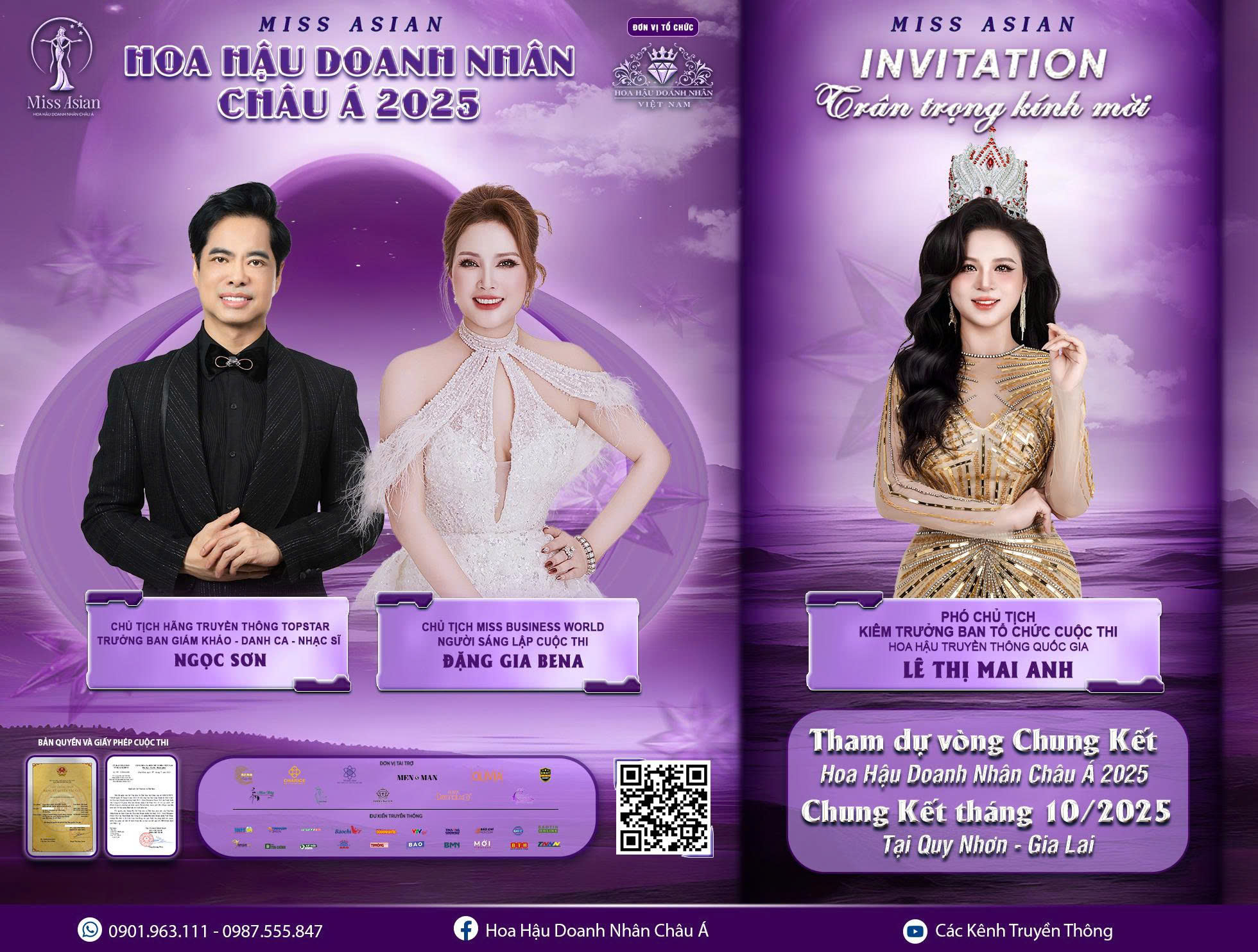 Hoa hậu Doanh nhân Châu Á 2025 – mùa thứ 4 chính thức khởi động tại phố biển Quy Nhơn. Sau ba mùa rực rỡ, với dấu ấn gần nhất khi nữ doanh nhân Lâm Thị Thủy đăng quang tại Gia Lai, cuộc thi đã khẳng định vị thế là sân chơi uy tín, nơi vương miện không chỉ tôn vinh vẻ đẹp bên ngoài mà còn là biểu tượng của bản lĩnh và lòng nhân ái. Được tổ chức bởi Công ty Cổ phần Hoa hậu Doanh nhân Việt Nam, dưới sự dẫn dắt của Chủ tịch Miss Business World Đặng Gia Bena, danh ca – nhạc sĩ Ngọc Sơn trong vai trò Trưởng BGK, cùng Hoa hậu Truyền thông quốc gia Lê Thị Mai Anh và Hoa hậu Đại sứ Toàn cầu Nguyễn Hạnh Nguyên. Đêm chung kết cuối tháng 10 hứa hẹn sẽ là một bữa tiệc cảm xúc, nơi nhan sắc hội nhập, trí tuệ dẫn lối và bản lĩnh vươn tầm châu Á, khắc sâu dấu ấn không thể phai trong lòng khán giả và trong hành trình phát triển của mỗi nữ doanh nhân Việt.