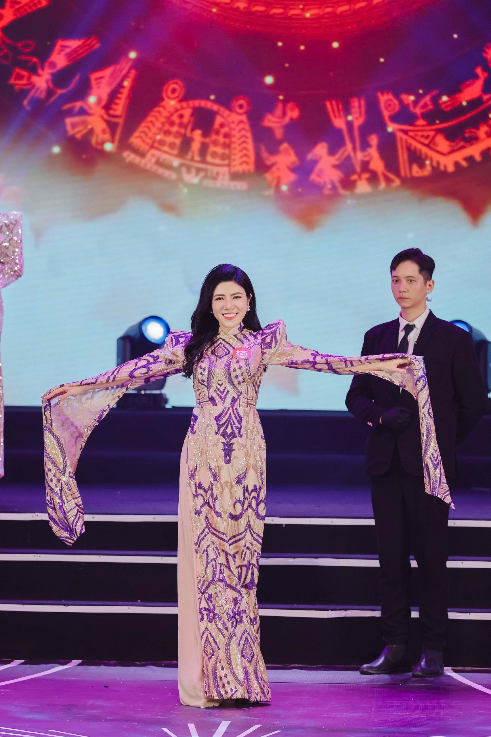 Trên sân khấu hoành tráng được dàn dựng mô phỏng nét văn hóa hào hùng của vùng đất Tây Sơn, các thí sinh tiếp tục duyên dáng khoe sắc trong bộ sưu tập áo dài “Sóng ánh kim – Huyền thoại biển Quy Nhơn” của nhà thiết kế Tony Phạm. Sử dụng chất liệu lụa cao cấp kết hợp kỹ thuật thêu tay tinh xảo, bộ sưu tập gợi hình ảnh người phụ nữ Việt dịu dàng, nền nã mà vẫn tràn đầy tự tin và bản lĩnh. Mỗi tà áo là một tác phẩm nghệ thuật, hòa quyện giữa hồn cốt truyền thống và hơi thở đương đại, tôn vinh nét đẹp mềm mại, thanh tao nhưng đầy tự hào của người phụ nữ Việt trong thời kỳ hội nhập.