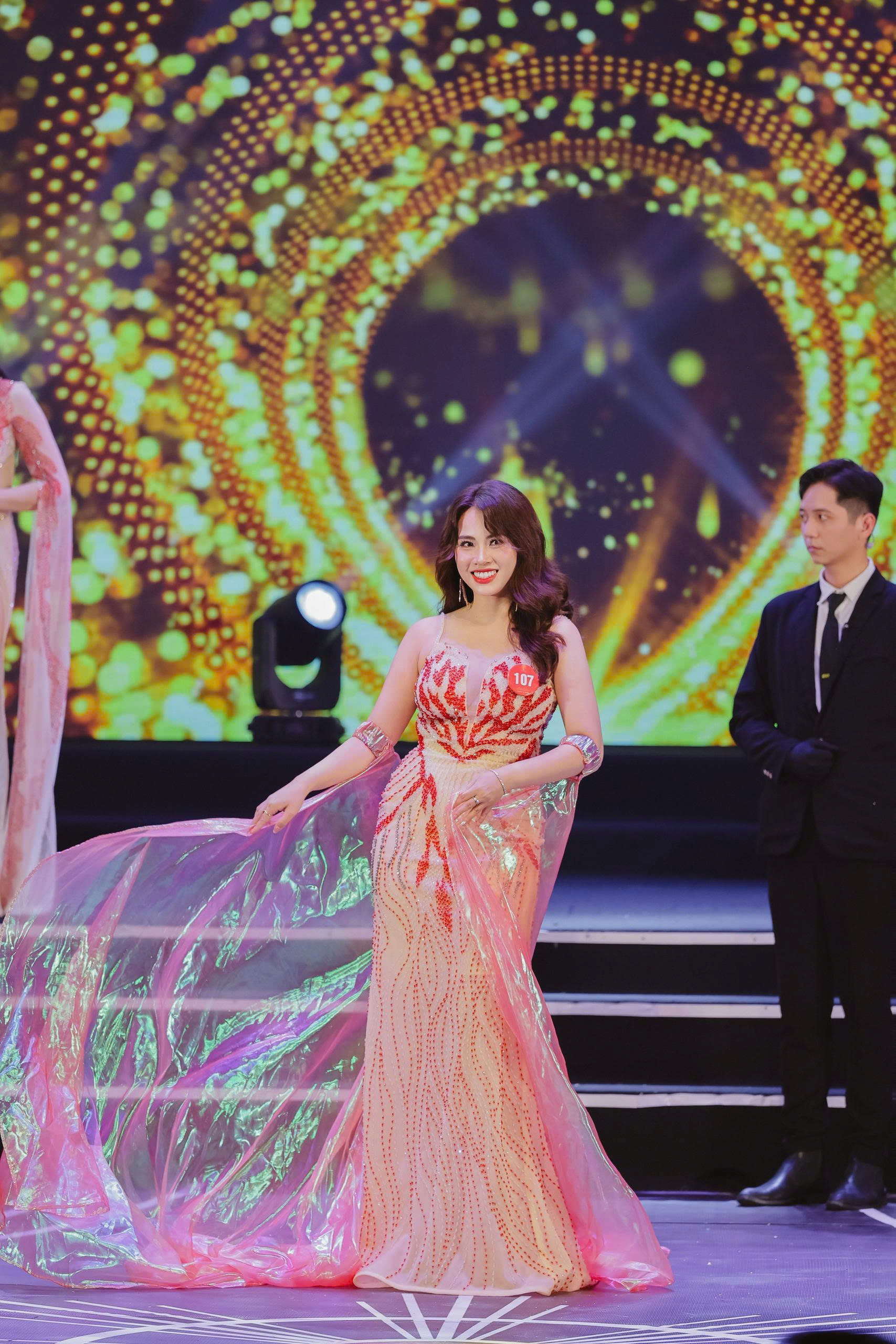 Trên sân khấu hoành tráng được dàn dựng mô phỏng nét văn hóa hào hùng của vùng đất Tây Sơn, các thí sinh tiếp tục duyên dáng khoe sắc trong bộ sưu tập áo dài “Sóng ánh kim – Huyền thoại biển Quy Nhơn” của nhà thiết kế Tony Phạm. Sử dụng chất liệu lụa cao cấp kết hợp kỹ thuật thêu tay tinh xảo, bộ sưu tập gợi hình ảnh người phụ nữ Việt dịu dàng, nền nã mà vẫn tràn đầy tự tin và bản lĩnh. Mỗi tà áo là một tác phẩm nghệ thuật, hòa quyện giữa hồn cốt truyền thống và hơi thở đương đại, tôn vinh nét đẹp mềm mại, thanh tao nhưng đầy tự hào của người phụ nữ Việt trong thời kỳ hội nhập.