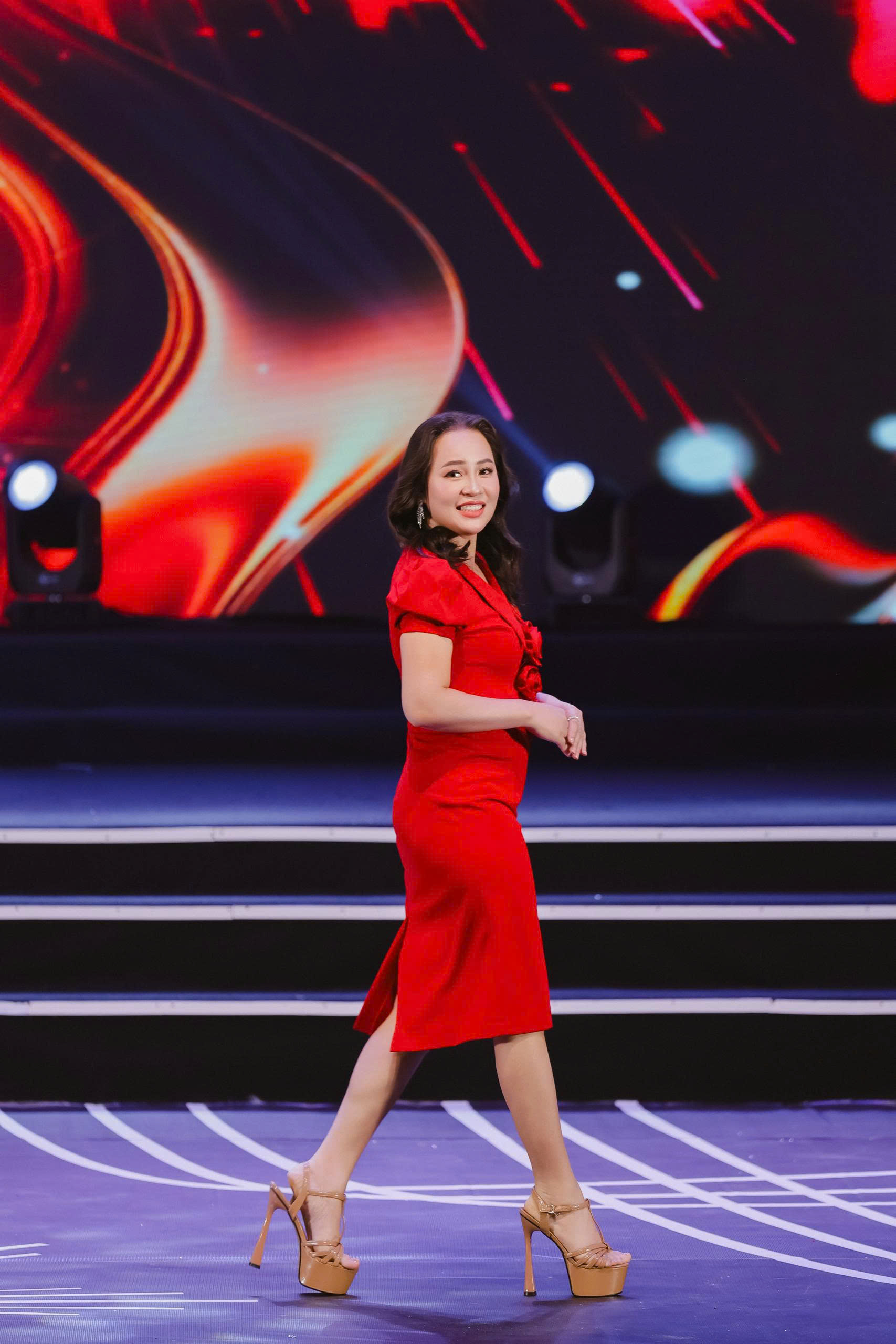 Khán giả reo hò cuồng nhiệt khi Ánh Nga tự tin hô tên trong phần thi trang phục công sở, khoe vẻ thanh lịch và bản lĩnh của nữ doanh nhân hiện đại.