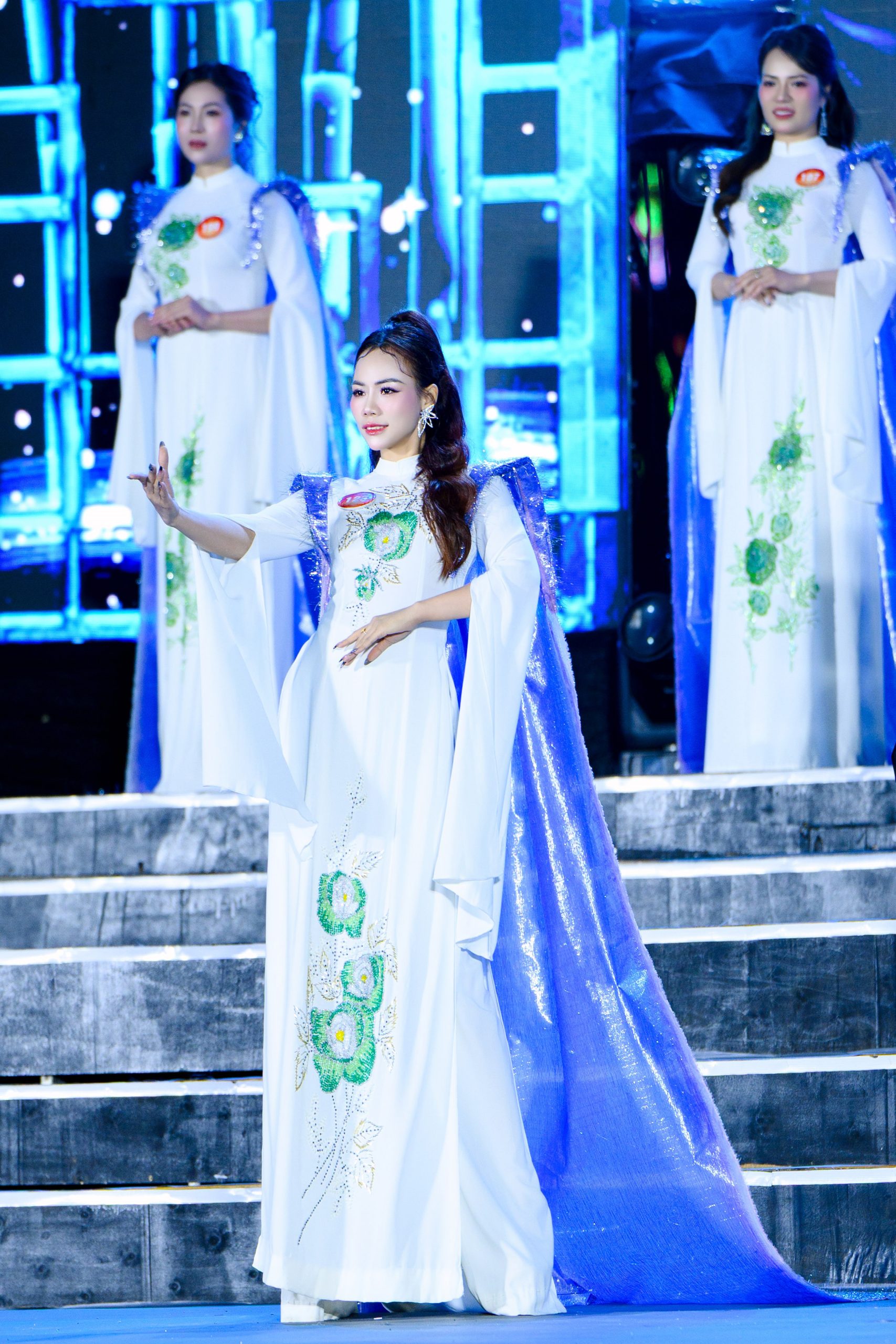 Vedette áo dài “Tinh hoa đại ngàn” khép lại phần trình diễn bằng vẻ đẹp sang trọng, đậm hơi thở văn hóa Tây Nguyên