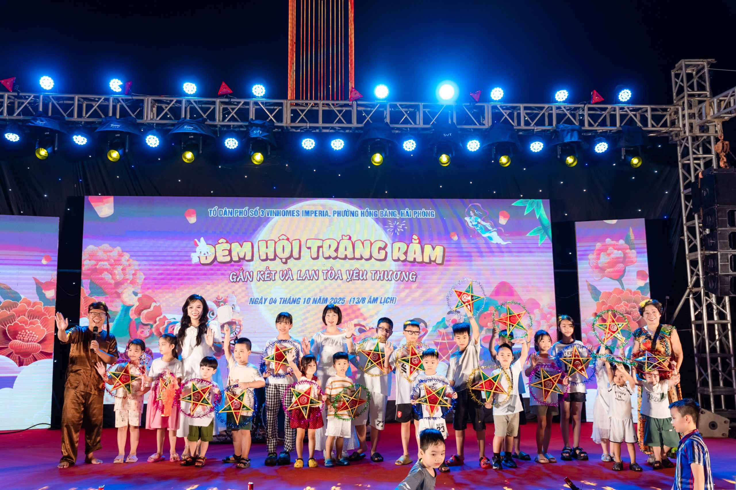 Tối ngày 04/10 vừa qua, khu đô thị Vinhomes Imperia (Hải Phòng) rộn ràng trong sắc màu rực rỡ của lồng đèn, tiếng trống múa lân và nụ cười hồn nhiên của các em nhỏ trong chương trình “Đêm hội Trăng Rằm”. Chương trình được tổ chức bởi Hoa hậu Nhân ái Ngô Thị Hoàng Ngân cùng sự đồng hành của cư dân Vinhomes Imperia và sự hỗ trợ của Lãnh đạo phường Hồng Bàng. Không chỉ là sân chơi cho các em nhỏ, sự kiện còn mang đậm giá trị nhân văn khi kết hợp trao quà và khích lệ tinh thần hiếu học.