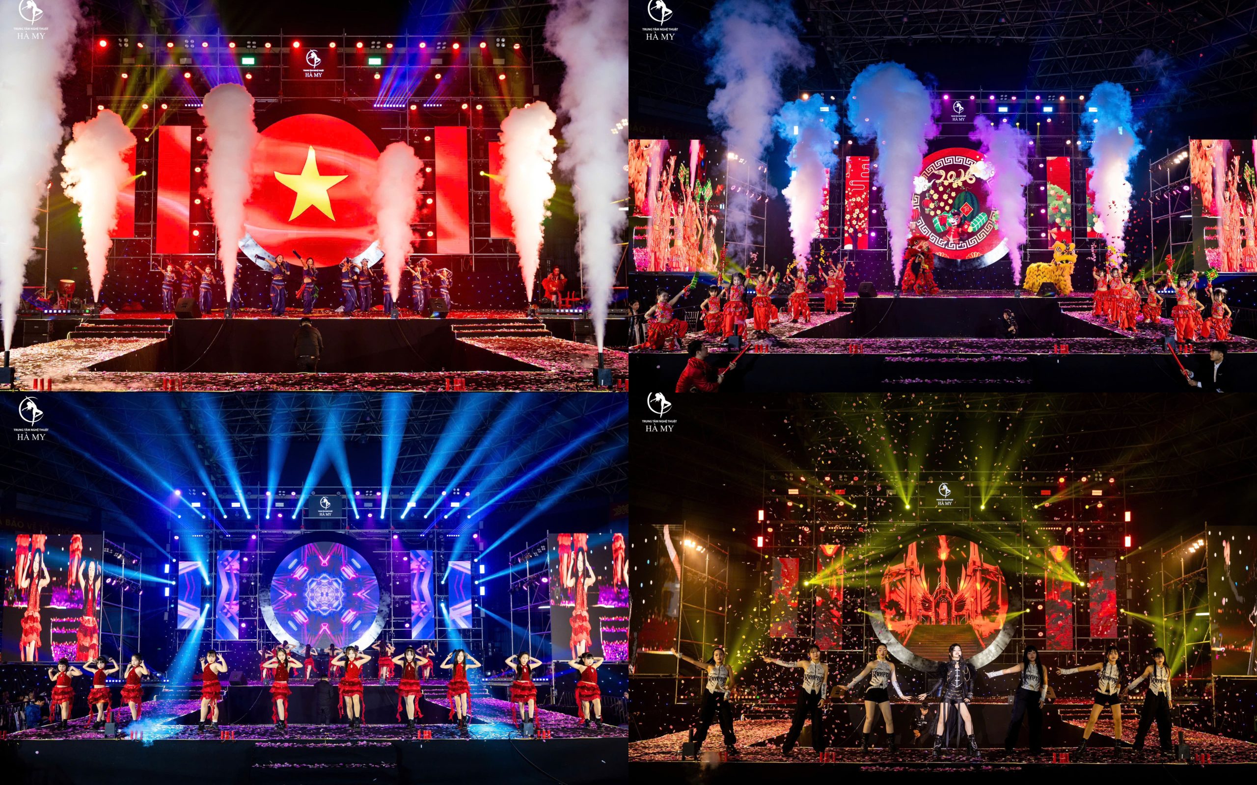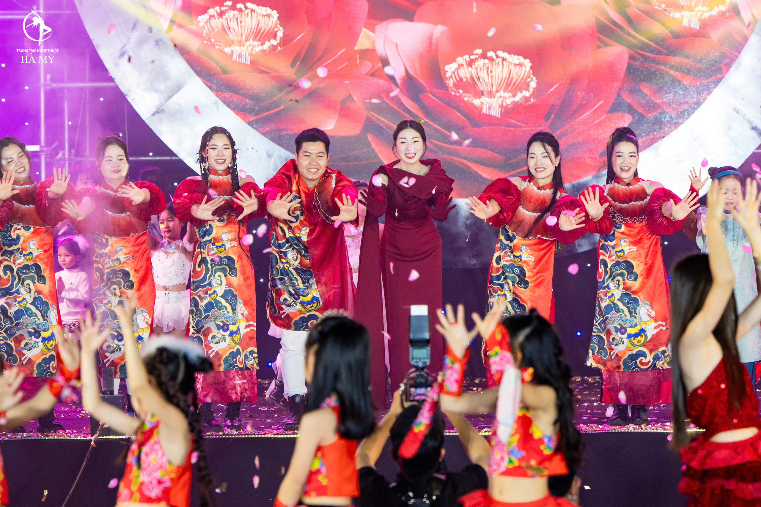 Đặc biệt, chương trình là dịp hội ngộ đầy ý nghĩa của các học viên đến từ 4 cơ sở chiến lược. Hơn 400 học viên đến từ khắp các chi nhánh đã cùng nhau “cháy” hết mình trên sân khấu, tạo nên một bầu không khí rực lửa đam mê. Sự gắn kết giữa các cơ sở không chỉ cho thấy quy mô phát triển lớn mạnh của hệ thống Hà My Academy, mà còn minh chứng cho sức mạnh tập thể, nơi mỗi cá nhân đều là một mảnh ghép quan trọng tạo nên bức tranh xuân rạng rỡ và tràn đầy sức sống.